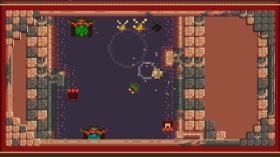 Direction Quad is a 2D action-adventure presented in top-down pixel art style. Take the role of young Quad as he hops through the swamp in any diagonal direction, collecting coins and bugs along the way. The objective is to get Quad from his starting lily pad to the finish line of each stage without colliding with the terrain or any treacherous traps.