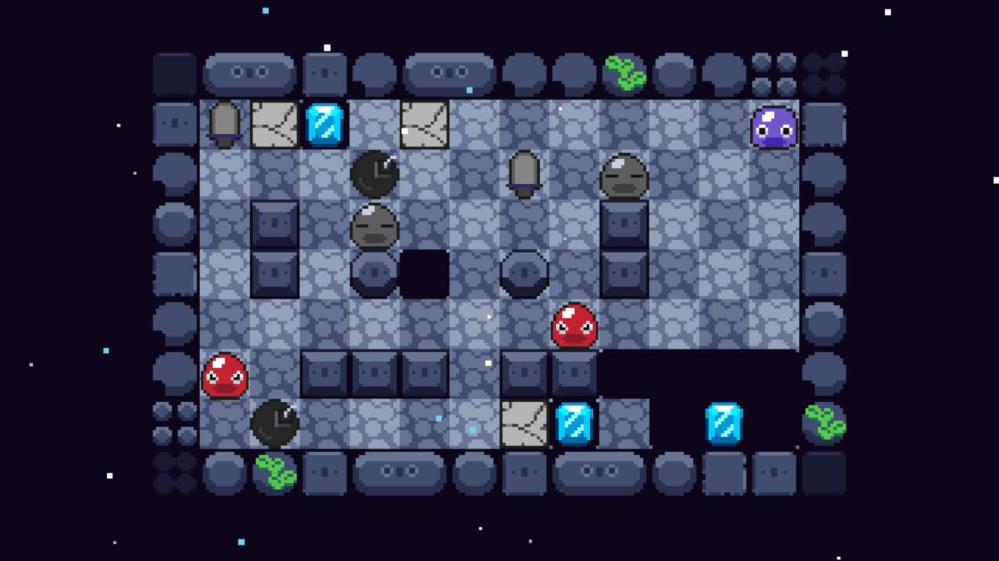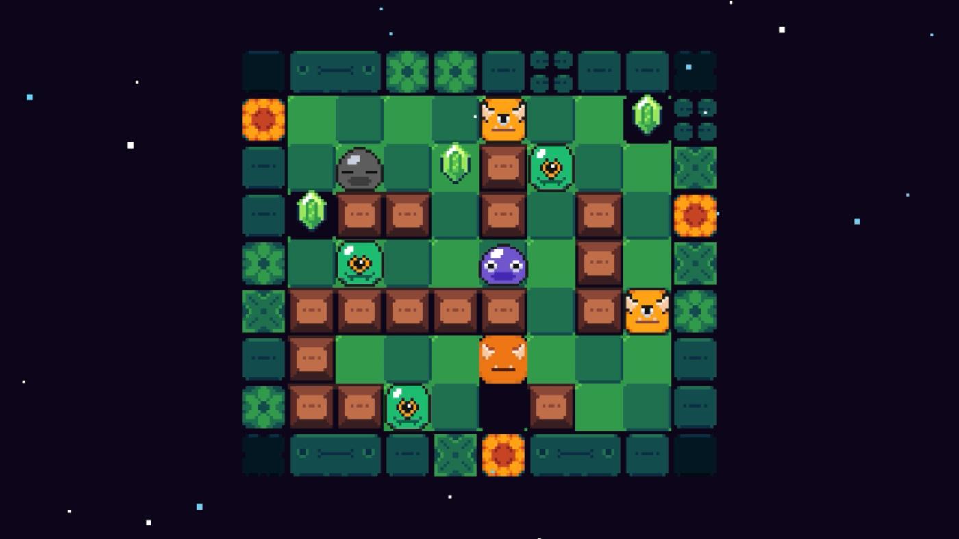 Get ready for GluMe, a sliding puzzle game where you control a slime, and any friends you pick up along the way. Move through top-down grid stages, collecting gems across 80 unique puzzles of growing size and complexity.